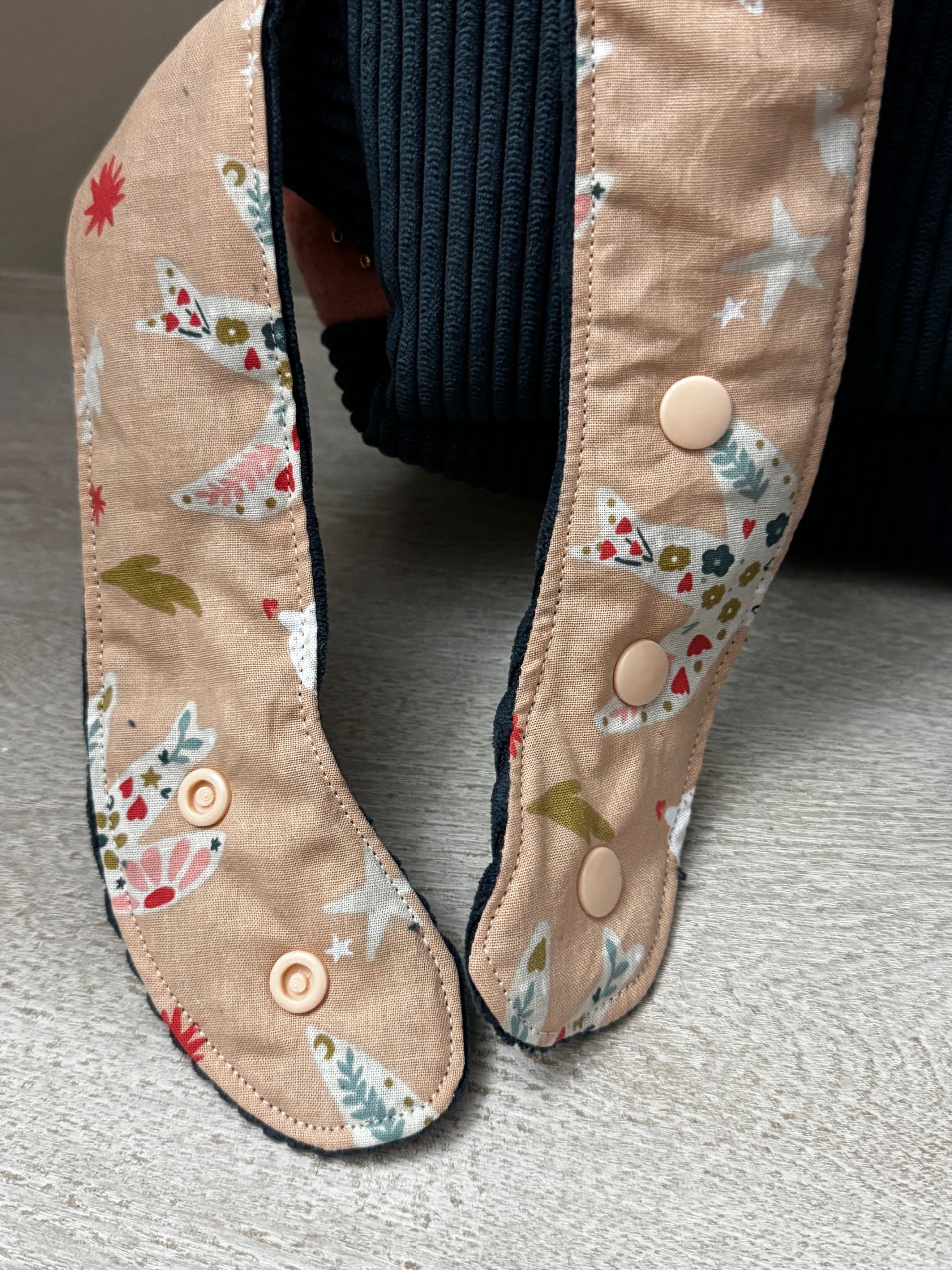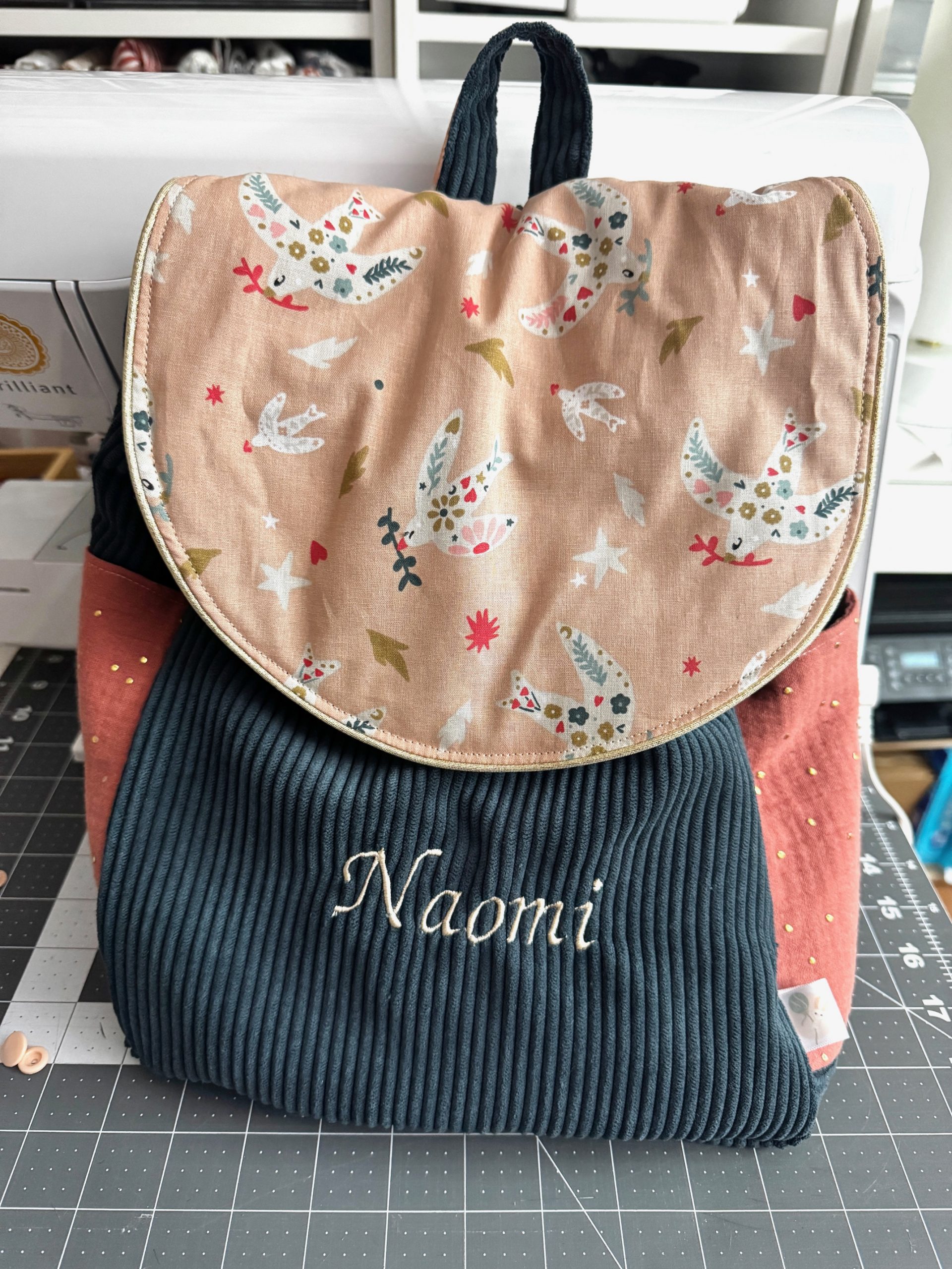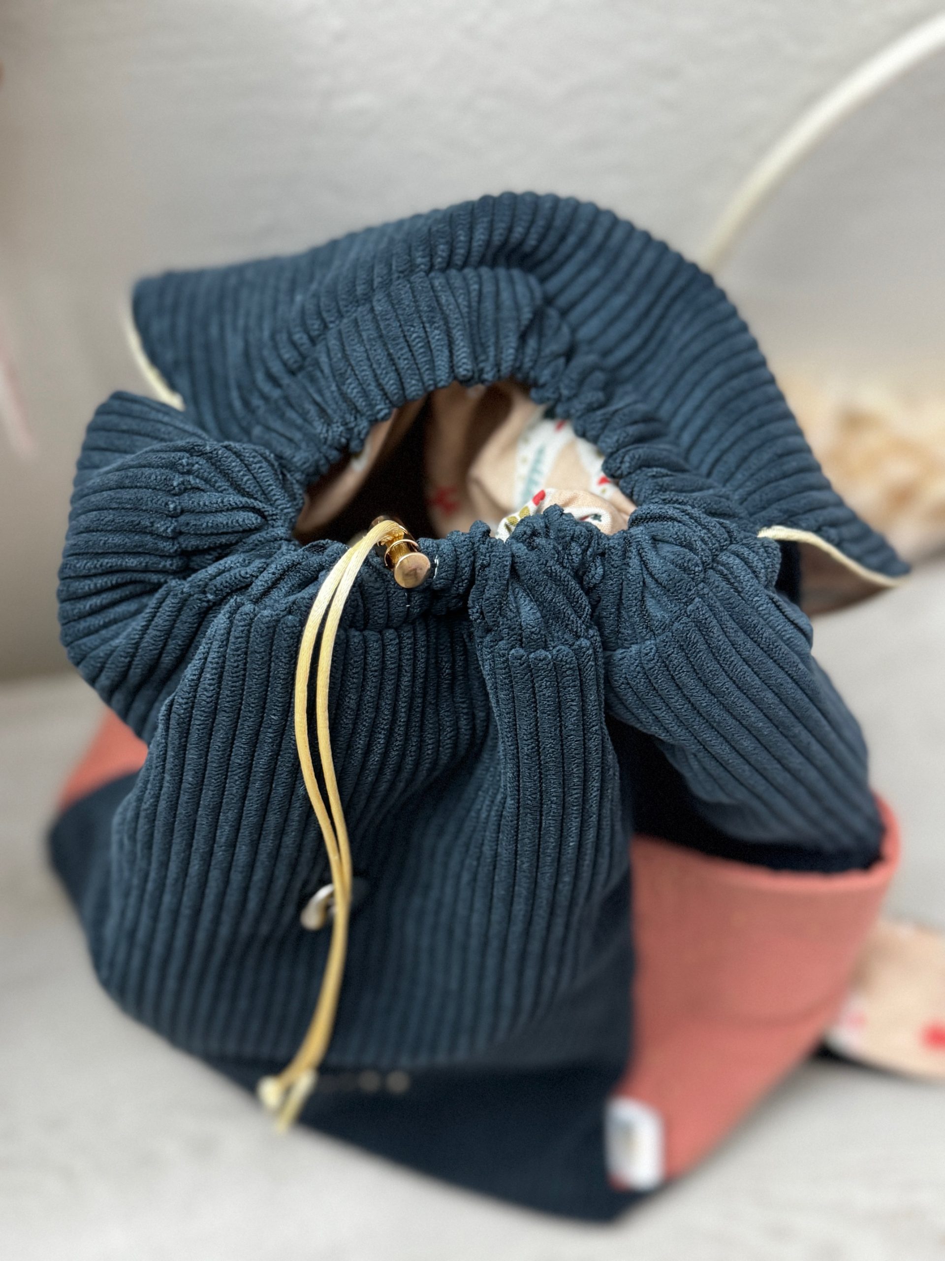 Adorable backpack for little ones. Perfect for carrying a “doudou” blanket, photo album, water bottle, and extra clothes. It closes with a drawstring and the padded shoulder straps are adjustable to suit the child’s age.